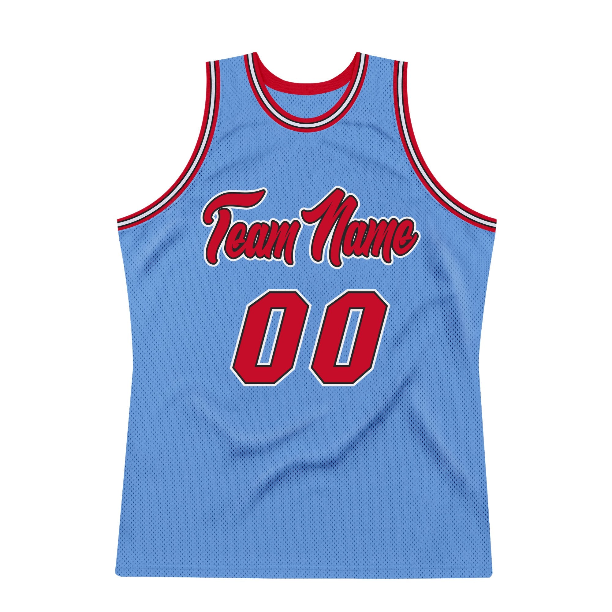 Custom Light Blue Red-Black Authentic Throwback Basketball Jersey