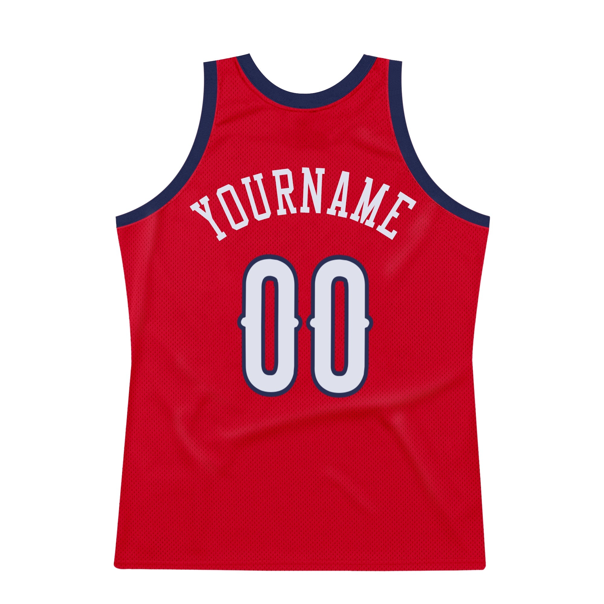 Custom Red White-Navy Authentic Throwback Basketball Jersey
