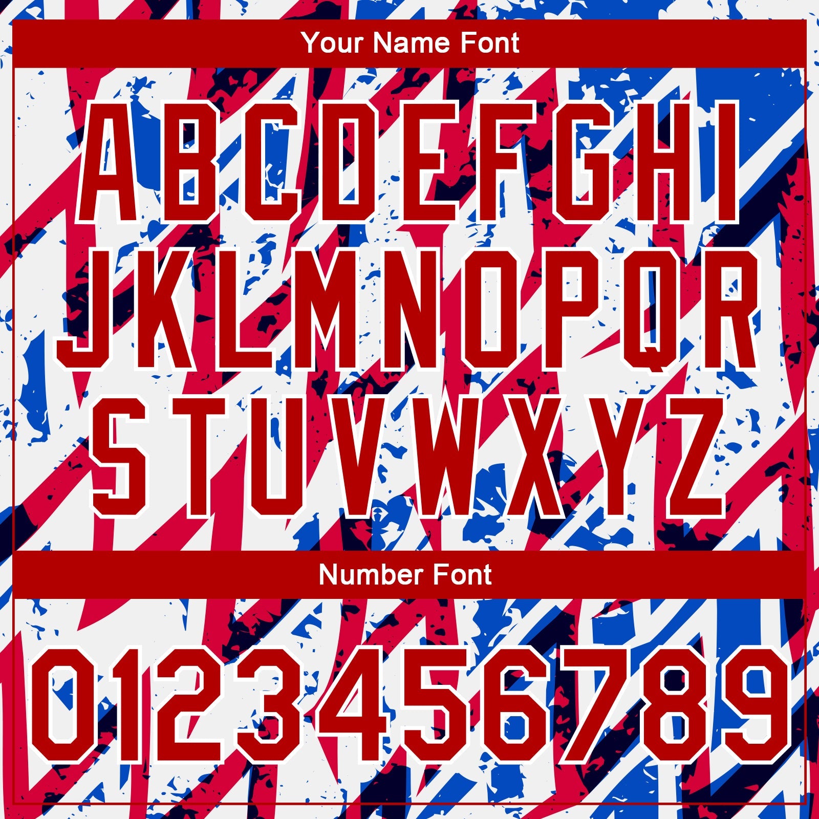 Custom White Royal-Red 3D Pattern Design Bomber Full-Snap Varsity Letterman Jacket