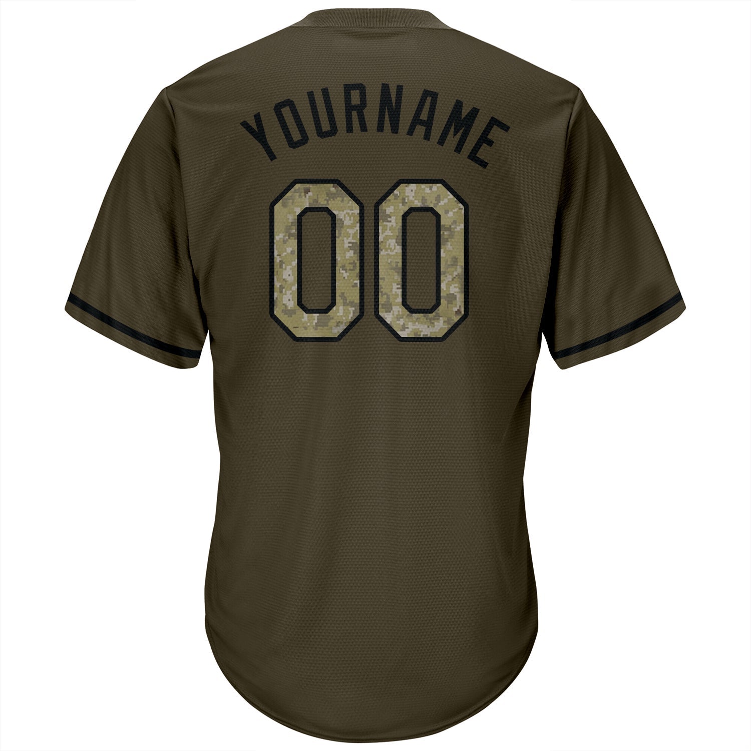 Custom Olive Camo-Black Authentic Throwback Rib-Knit Salute To Service Baseball Jersey Shirt