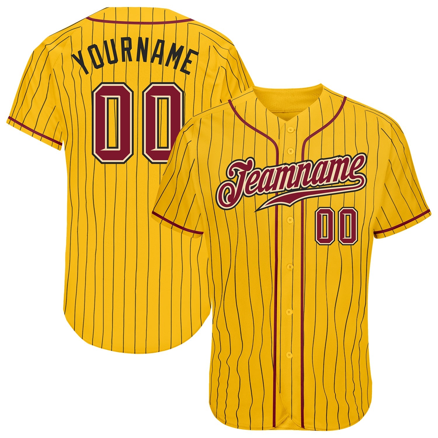 Custom Gold Black Pinstripe Crimson-Cream Authentic Baseball Jersey