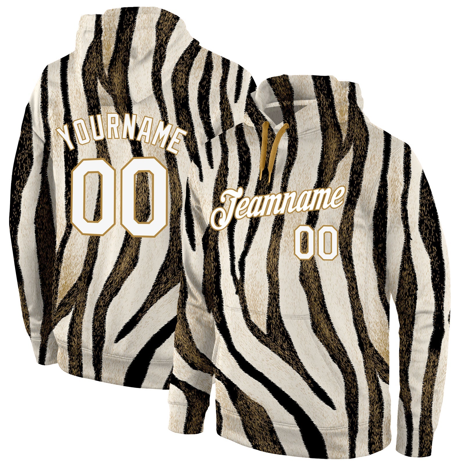Custom Stitched Black White-Old Gold 3D Pattern Design Leopard Sports Pullover Sweatshirt Hoodie